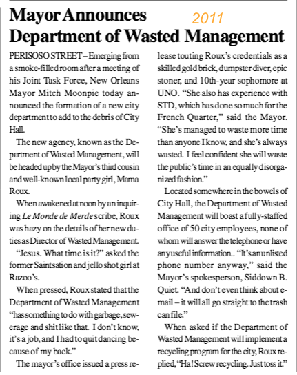 2011 Mama Roux Theme: Mama Roux went SteamPunk for the “Department of Wasted Management”.